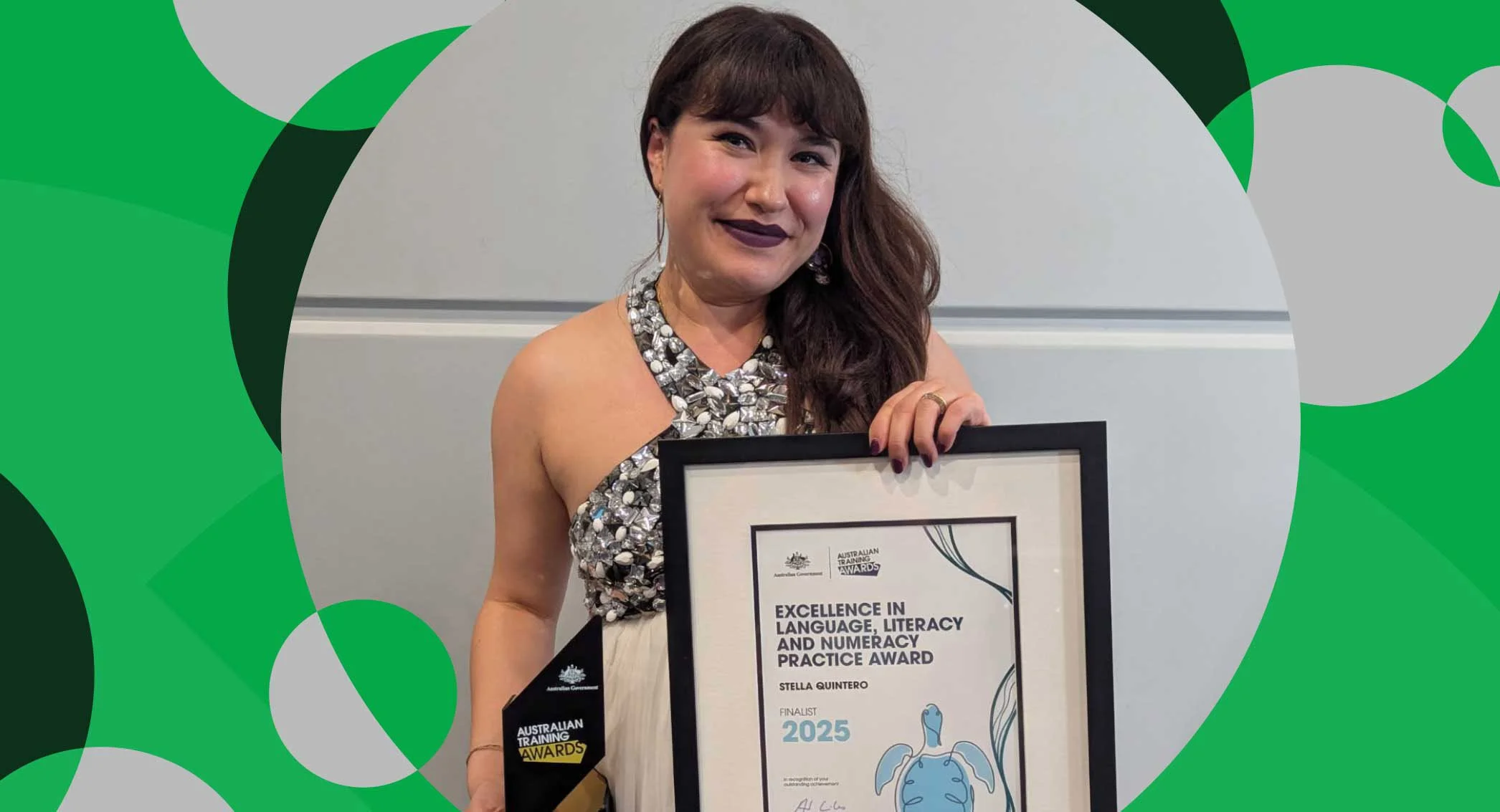 Stella Quintero, Max Solutions RTO Trainer based in Tasmania, has been recognised with the Award for Excellence in Language, Literacy and Numeracy Practice, presented by the Minister for Skills and Training - Andrew Giles.